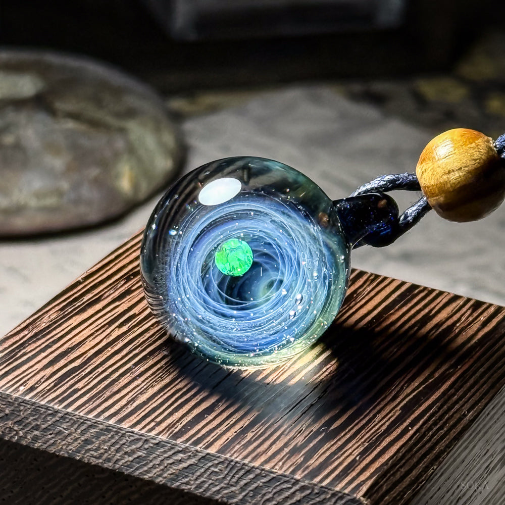 きらめきの宇宙ペンダント 淡いグリーンを感じる一点P20250925-1