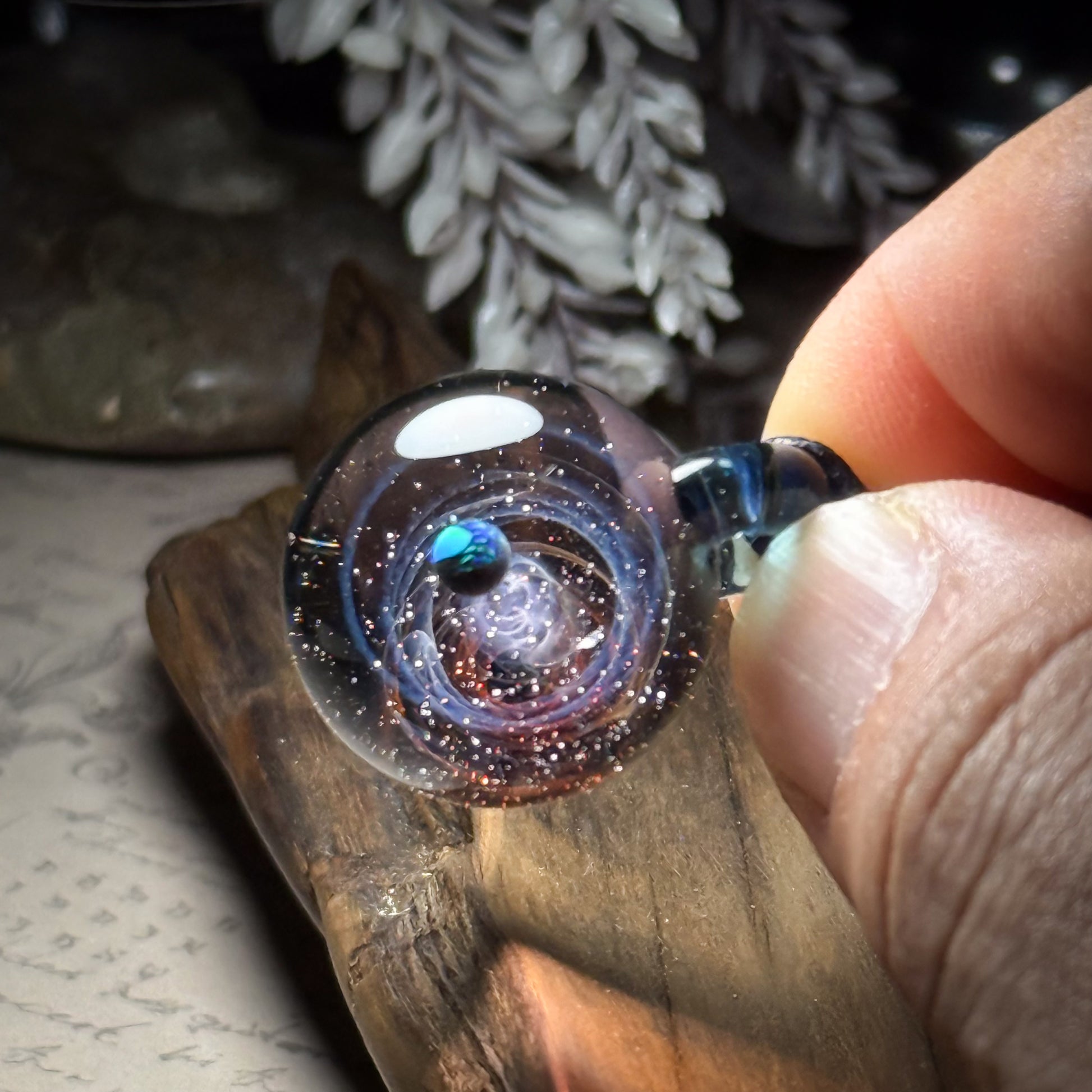 角度によってさまざまな色が見え隠れして、心を明るく照らしてくれます。きらめく星々をみながら心をリセット! 美しい宇宙をあなたの手に。