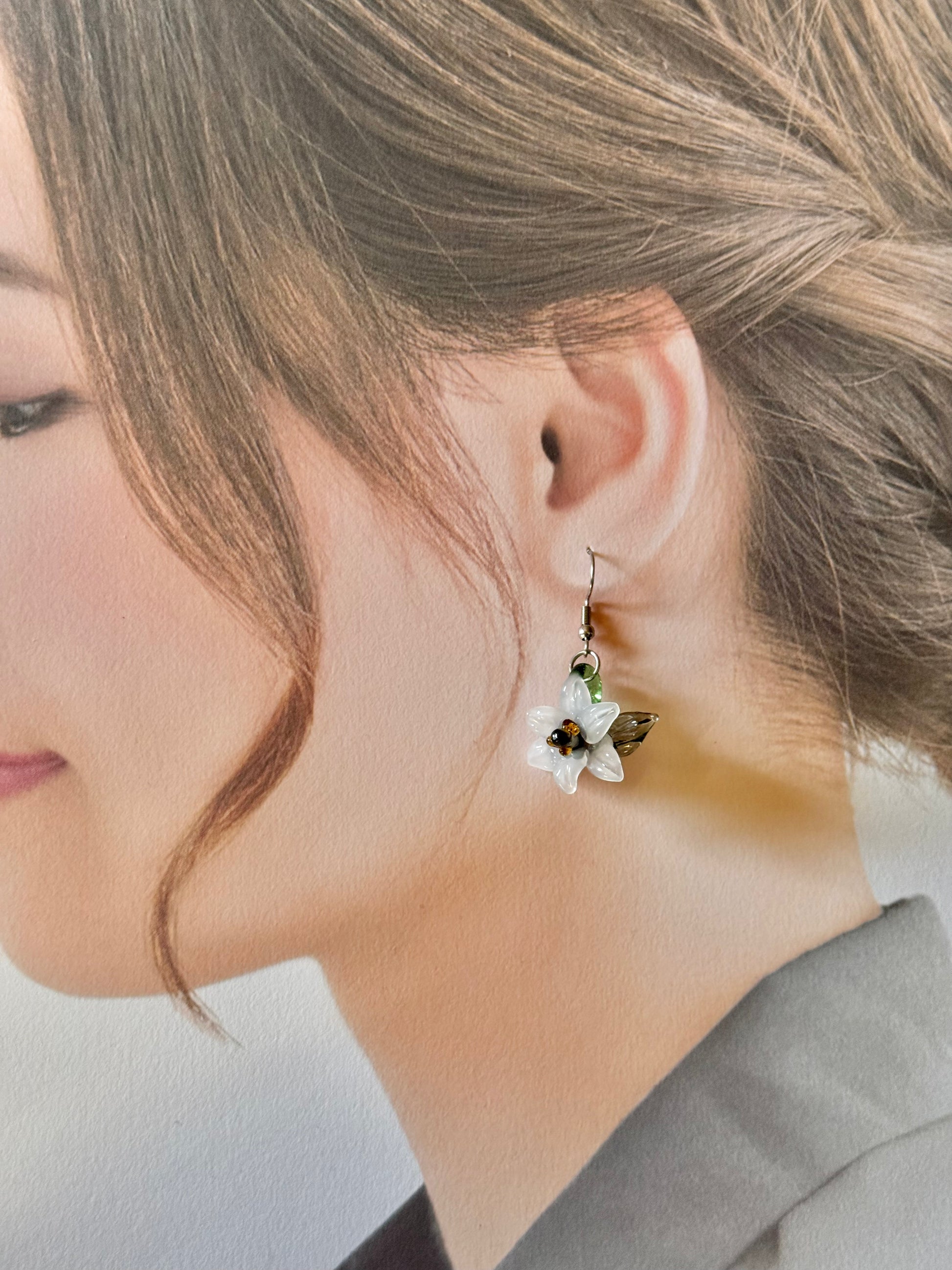 百合の片耳用ピアス