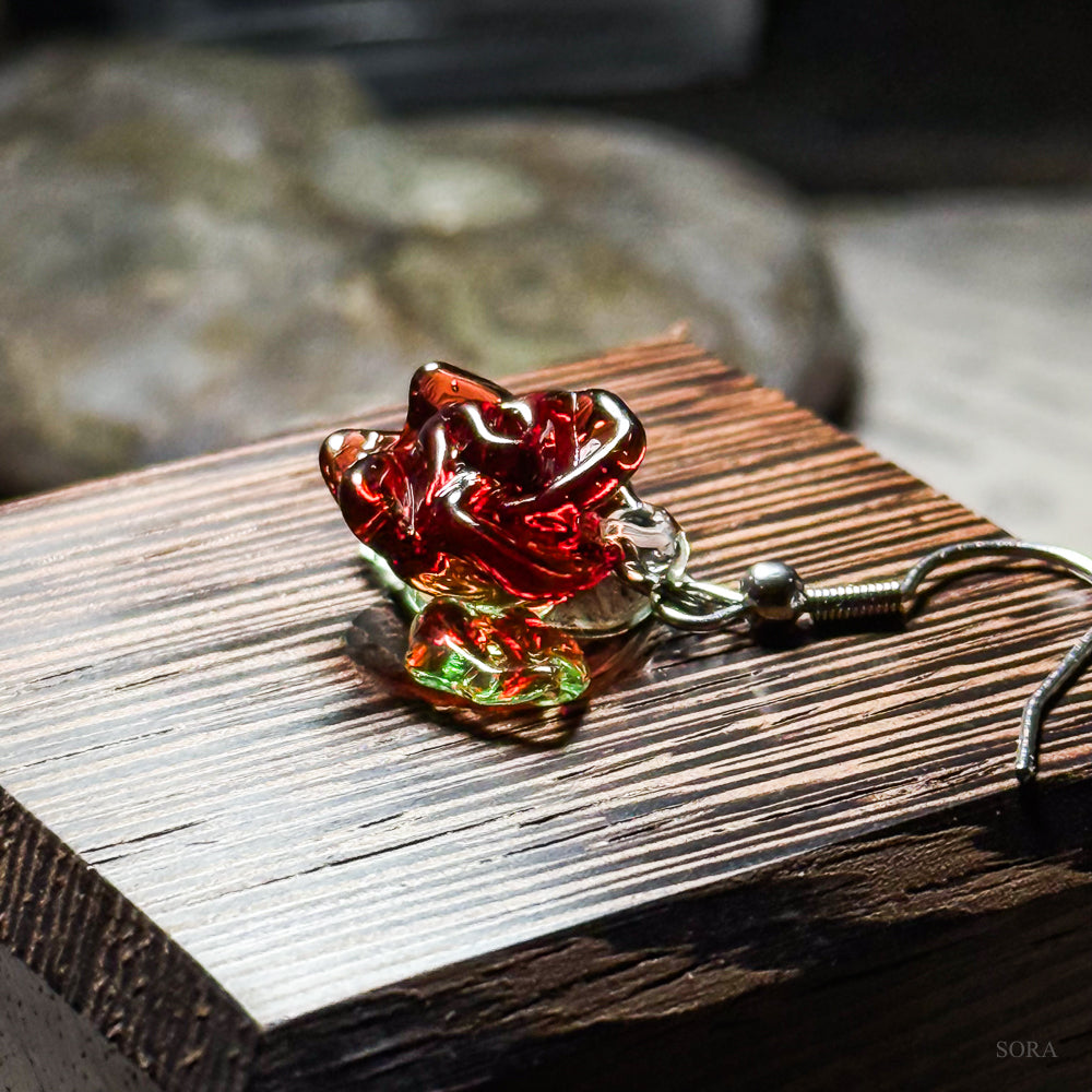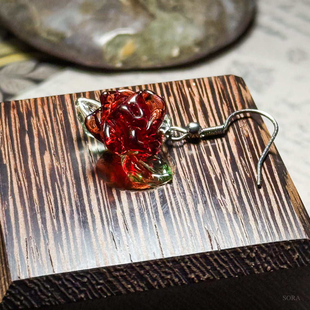 赤い薔薇の片耳用ピアス