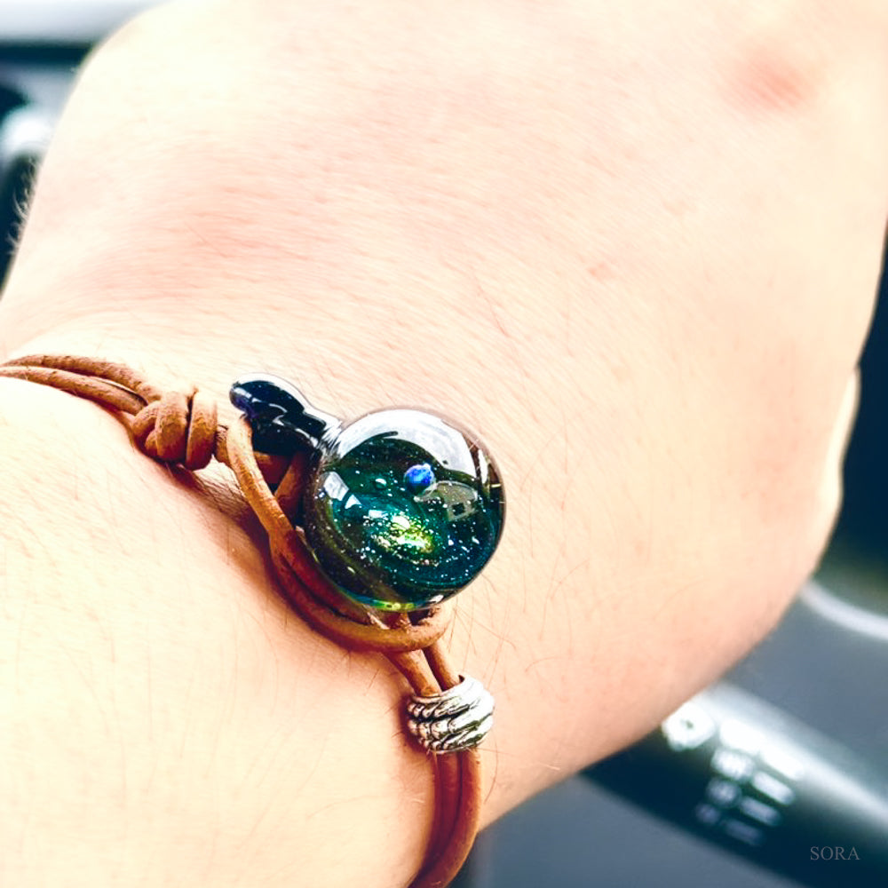 トップ、レザーバンド共にひとつひとつ手作りですので、観賞用としてのクオリティは確保しておりますが、手作り感があります。作品によっては気泡の弾けた小さな穴などがある場合でも、観賞、クオリティに問題がないと判断したものを出品しております。