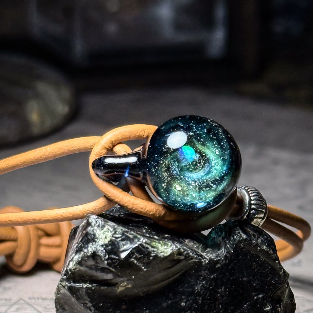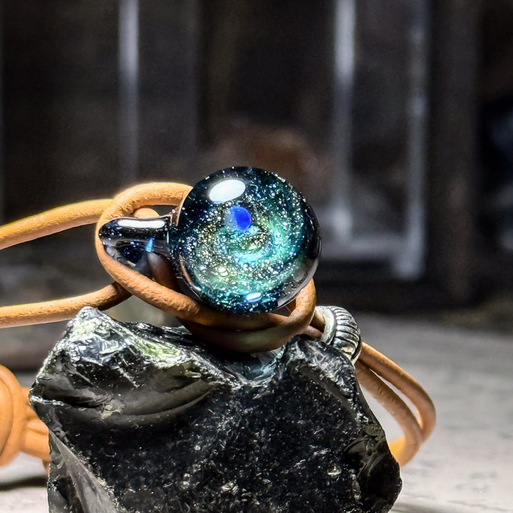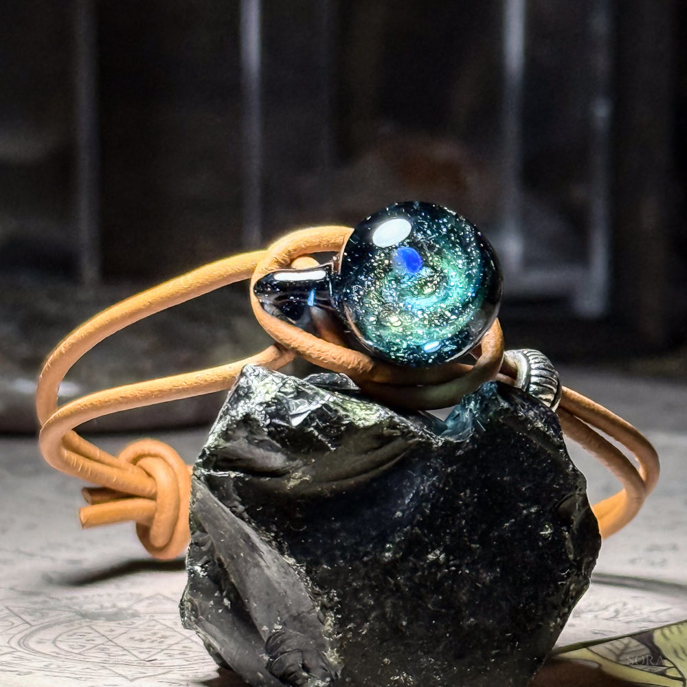 奥に煌めき幾万の星々を眺めるとき、現実とは違う幻想的な世界にあなたの心を連れて行ってくれるかもしれません。ペンダント、ミニインテリアに続いてブレスレットの登場です。