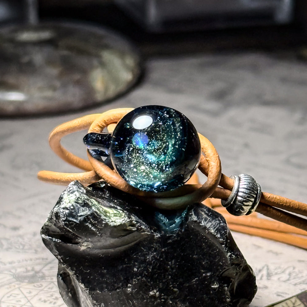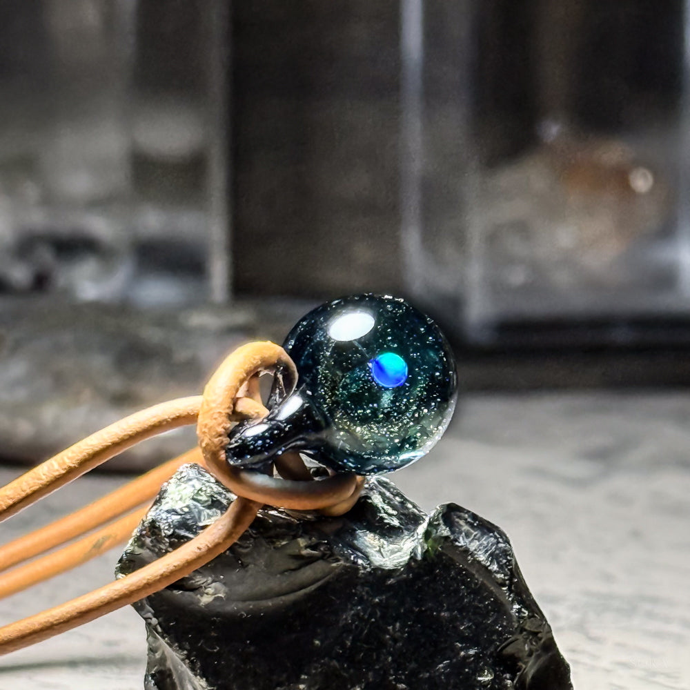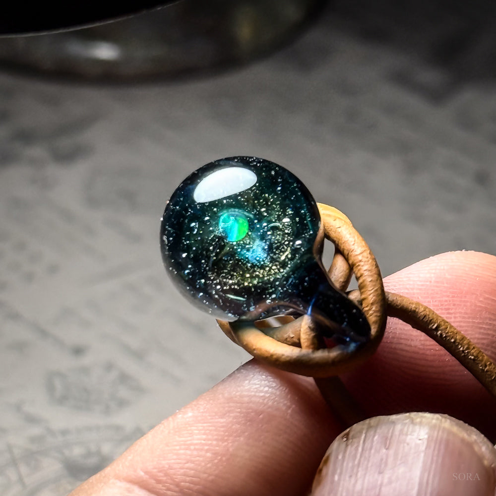 銀河の煌めきシリーズその名の通り、ガラスの中の宇宙を象徴する銀河のきらめきとオパールの惑星をとじこめた作品です。