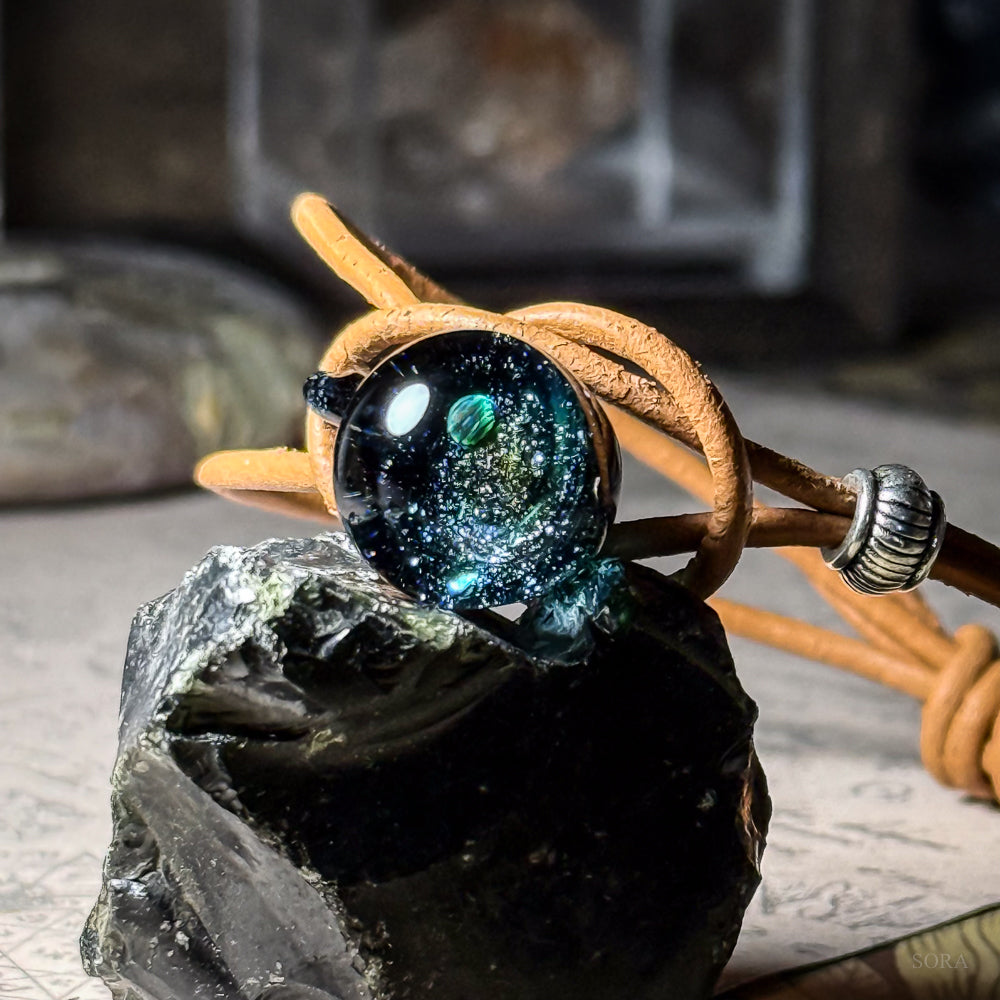 奥に煌めき幾万の星々を眺めるとき、現実とは違う幻想的な世界にあなたの心を連れて行ってくれるかもしれません。ペンダント、ミニインテリアに続いてブレスレットの登場です。