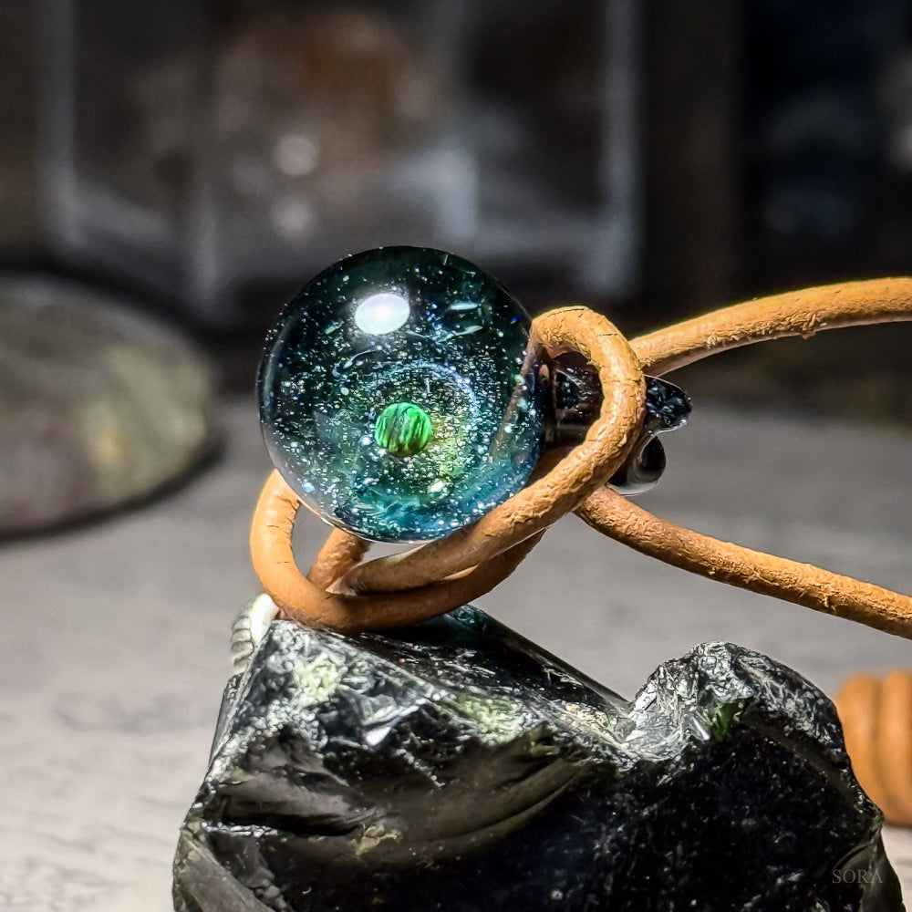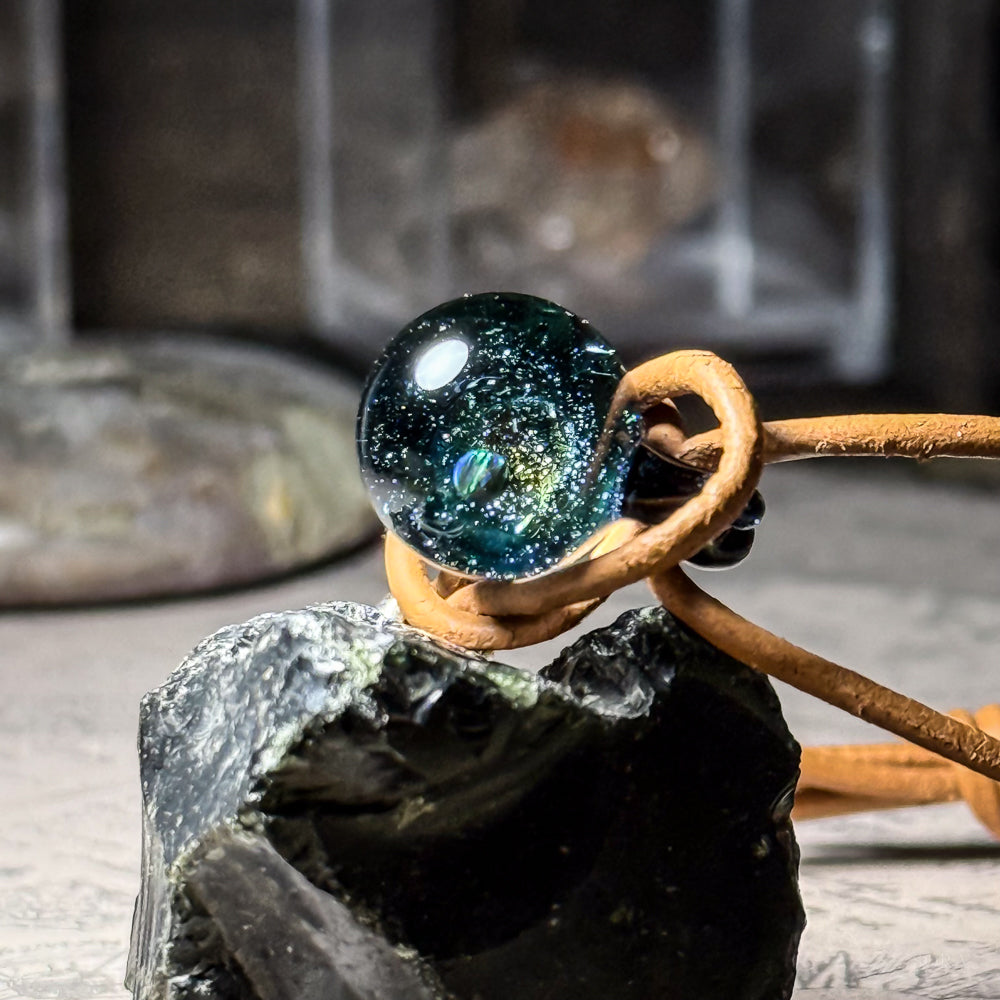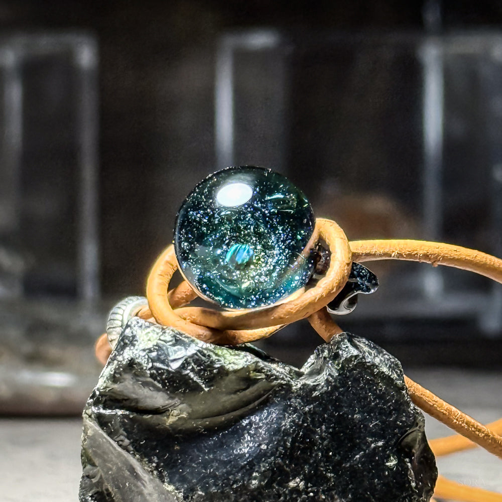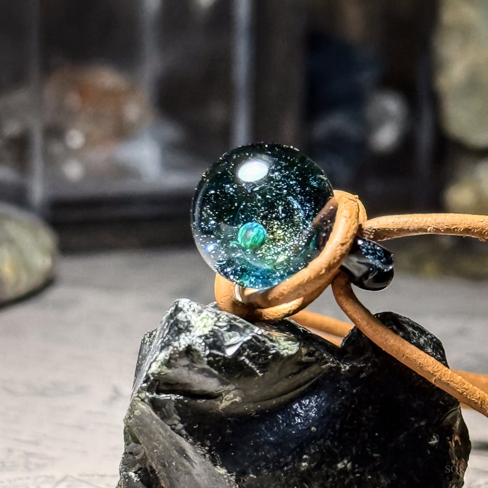銀河の煌めきシリーズその名の通り、ガラスの中の宇宙を象徴する銀河のきらめきとオパールの惑星をとじこめた作品です。