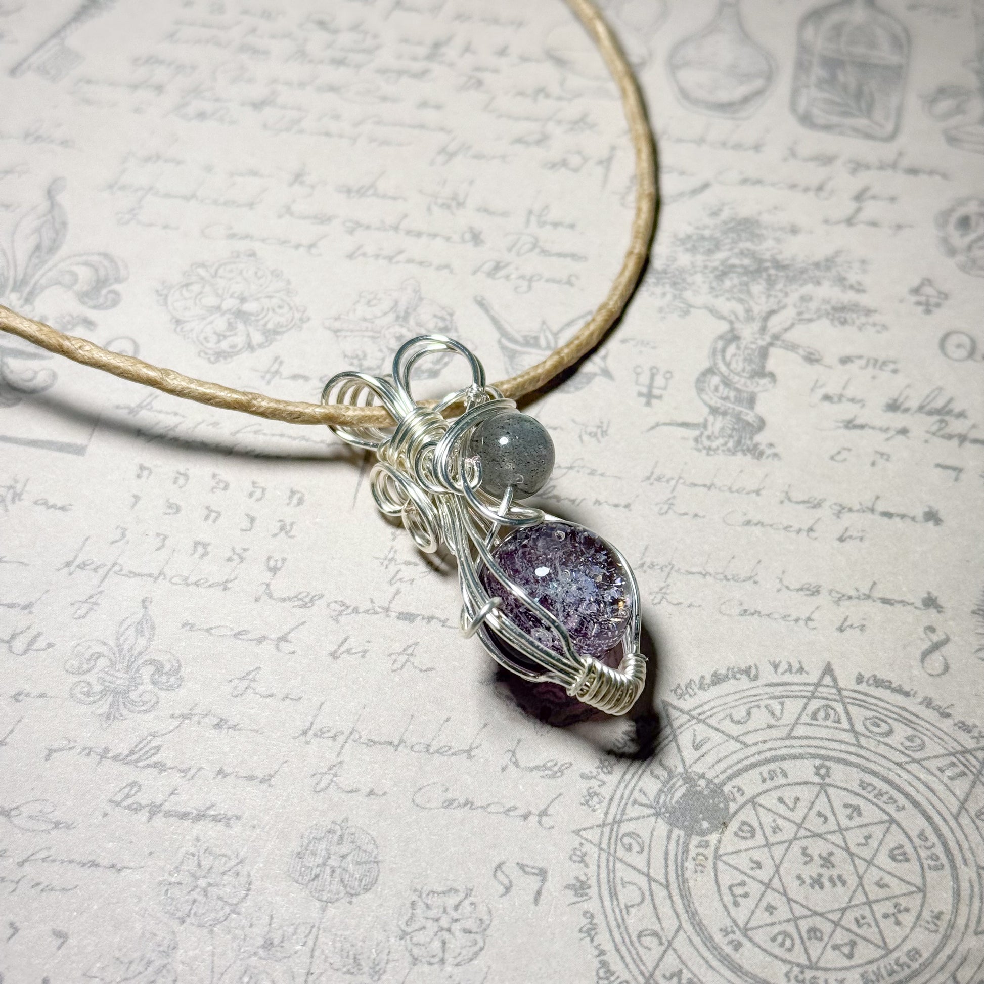 銀河の輝きとラブラドライトのワイヤーラッピングペンダント